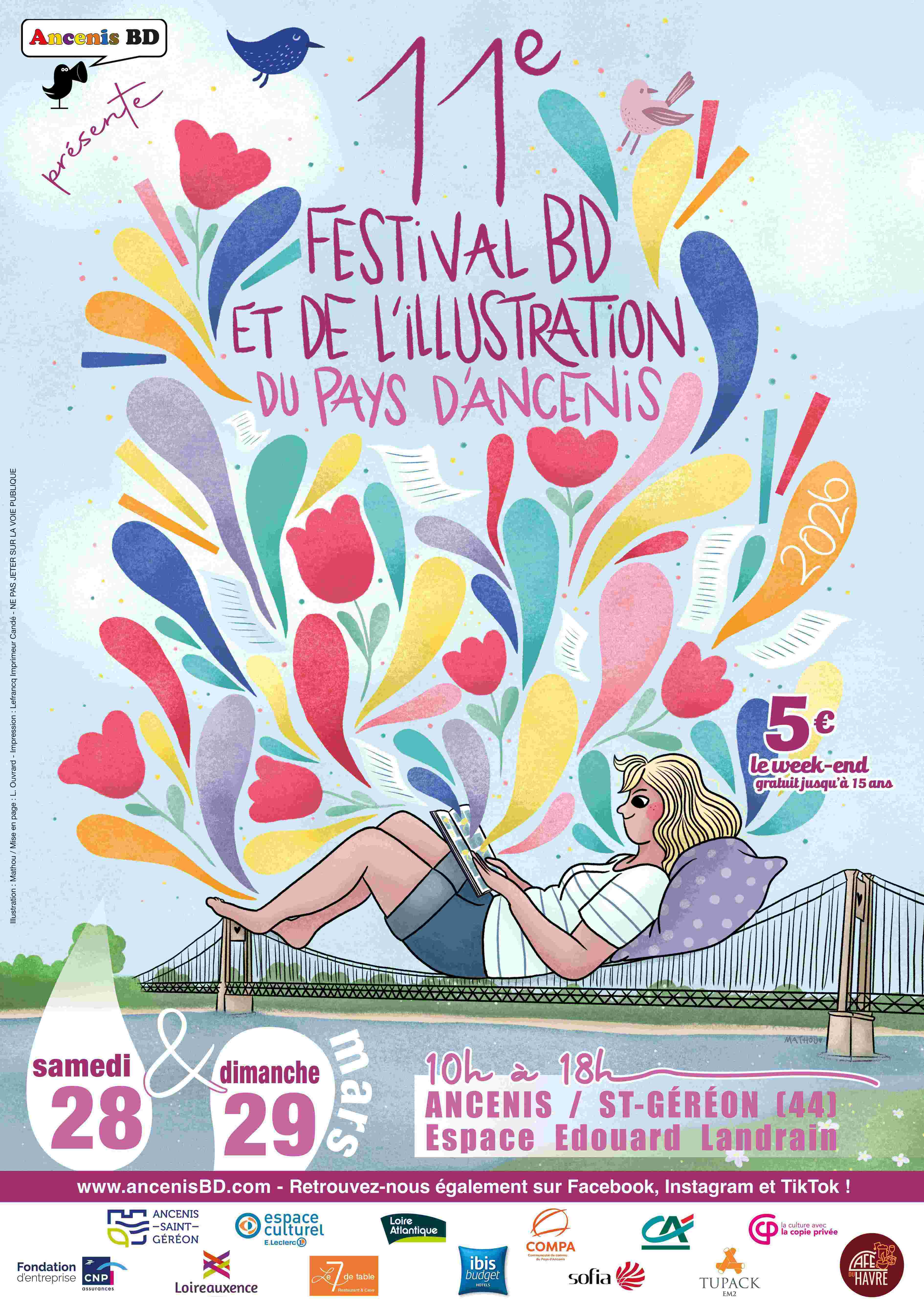 Nous sommes très heureux de vous présenter la nouvelle affiche du 11e festival de BD et de l'illustration d'Ancenis-Saint-Géréon de 2026 ! :)